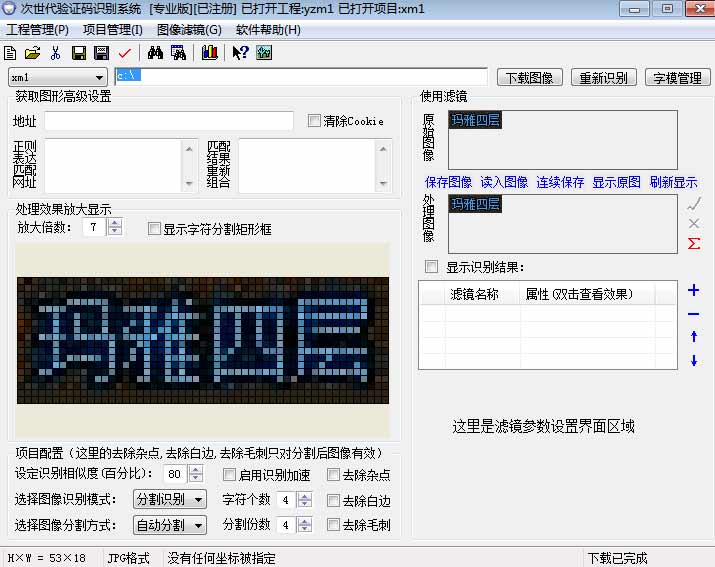 这样就做完了一个字模 点图像重载再做第二个字模 做完四个字模点保存退出 点 重新识别 就可以看效果了