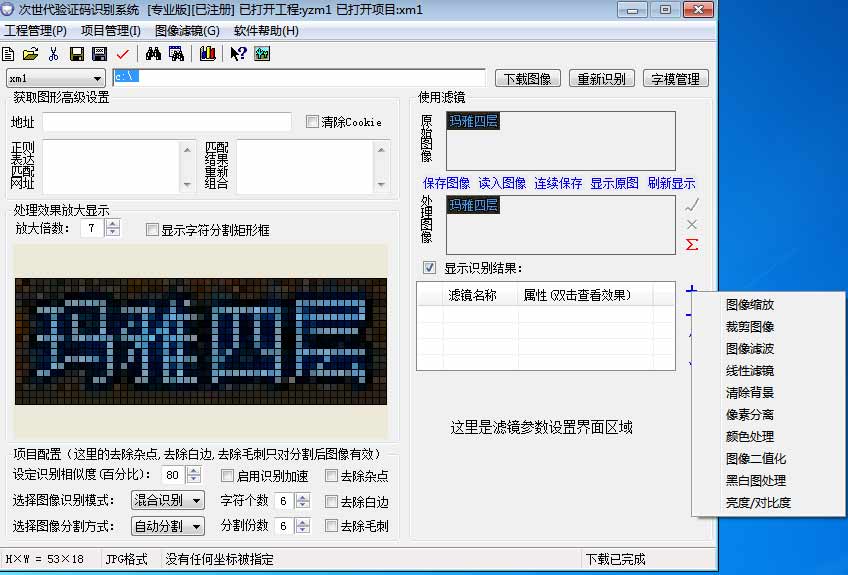 把 分割识别 改成 整体识别 字符个数原本是4 你改大些比如6 选 自动分割 分割分数也选6 就会得到下图